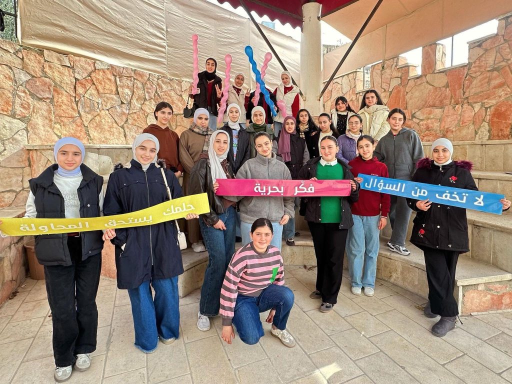 The GirlZone Program is designed for girls aged 12 to 18 and is implemented by the Jabal Al-Nar Club in partnership with the Sharik Youth Forum and with support from the United Nations Population Fund (UNFPA). The program aims to empower girls, develop their skills, and enhance their self-confidence so they can become active contributors in their communities. It provides a safe and inspiring space for self-expression, learning, and hands-on experience in various fields.